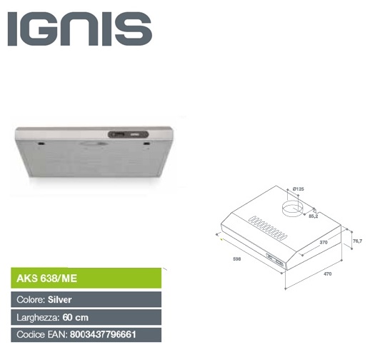 Cappa Sottopensile 60 Cm. Silver AKS638ME