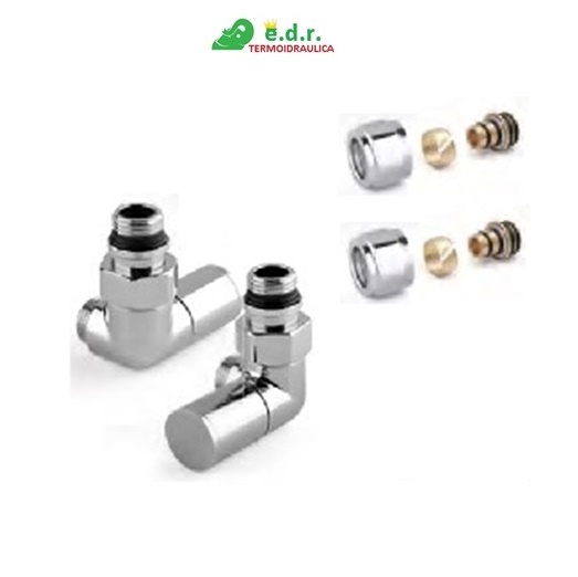 Kit Valvola-Detentore Angolo Testina Termostatiabile Completo Di Dadi M16X2