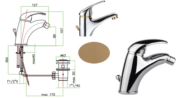 Miscelatore Vasca Fiore Nexus Cromo Oro 43CRO1400