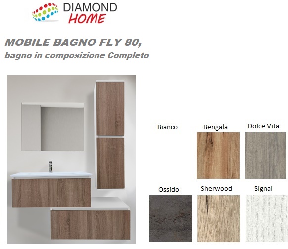 Mobile Bagno Fly 80 Bianco Ossido C/Specchio E Lavabo FLY80OS